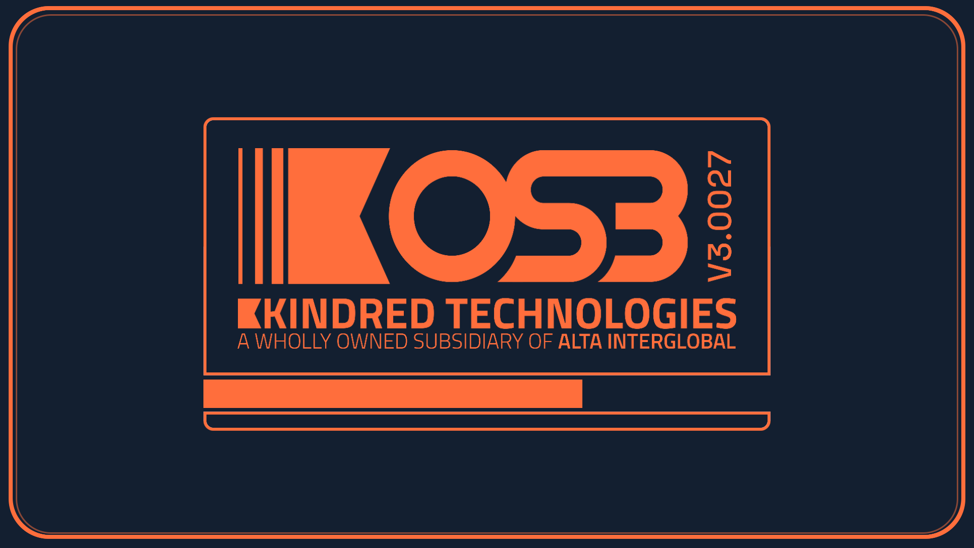 KOS3 v3.0027 boot screen for Kindred Technologies styled as a retro computer OS splash screen